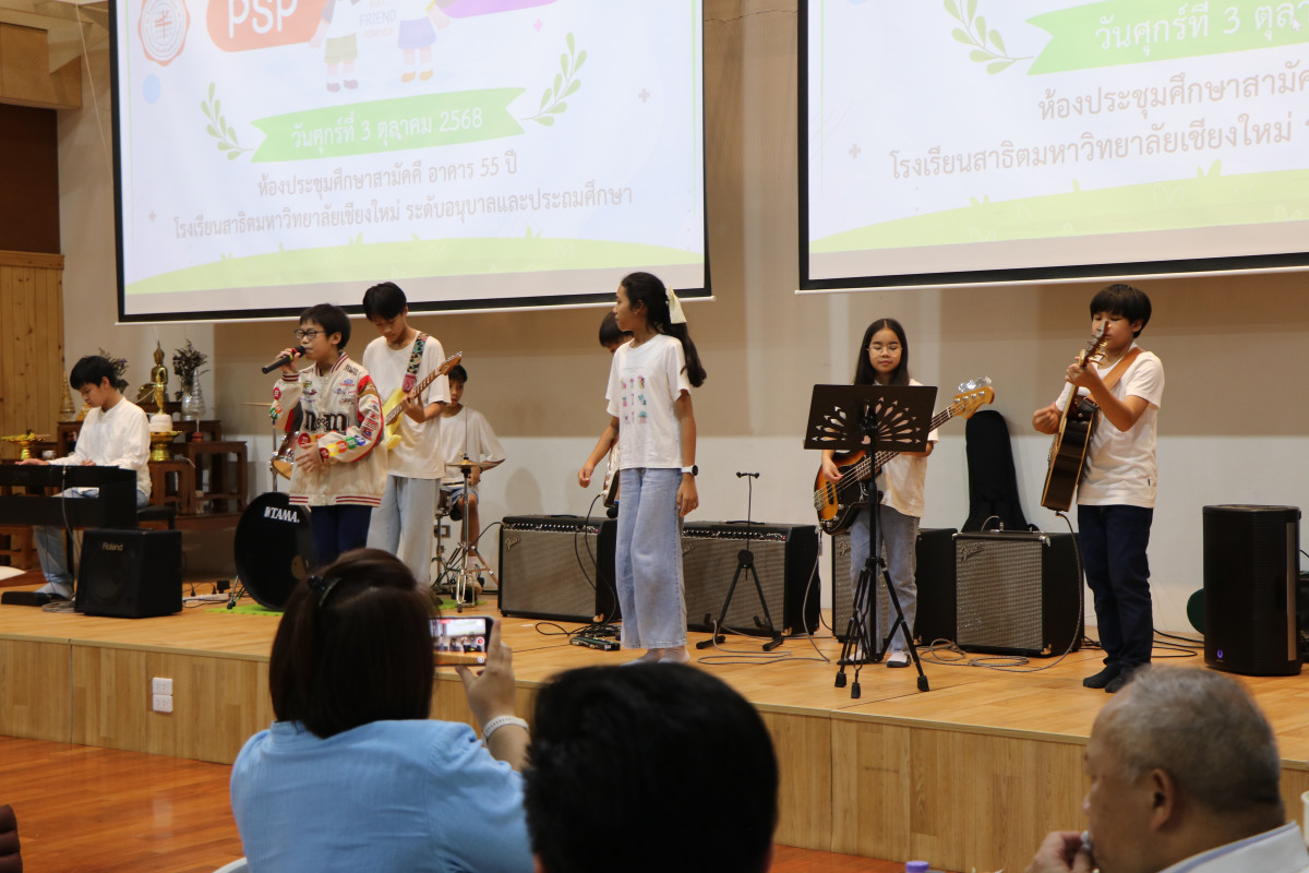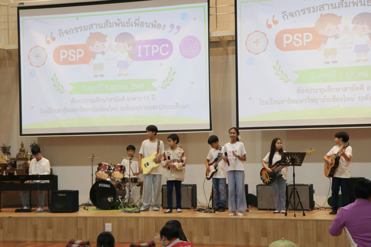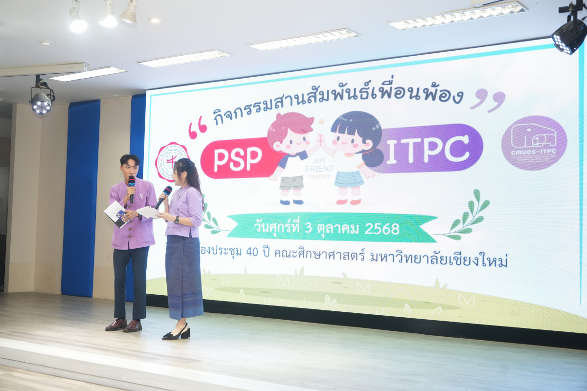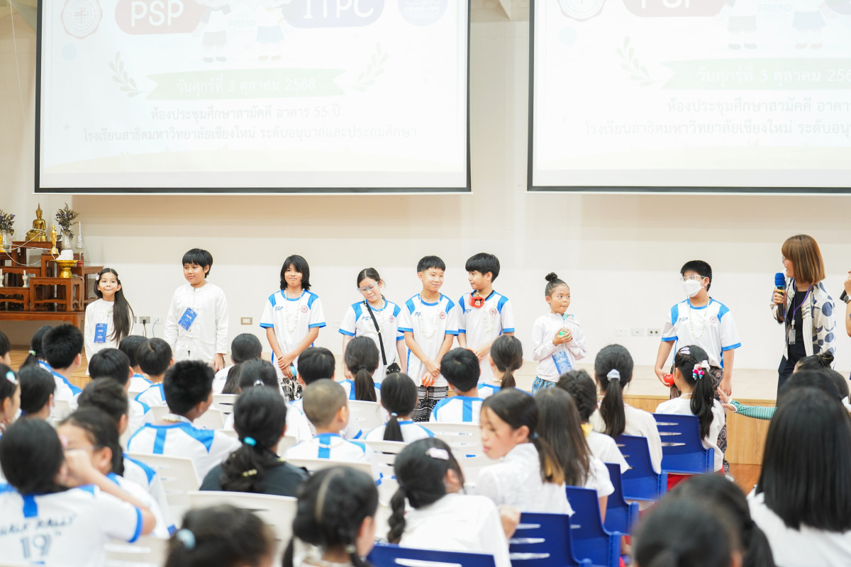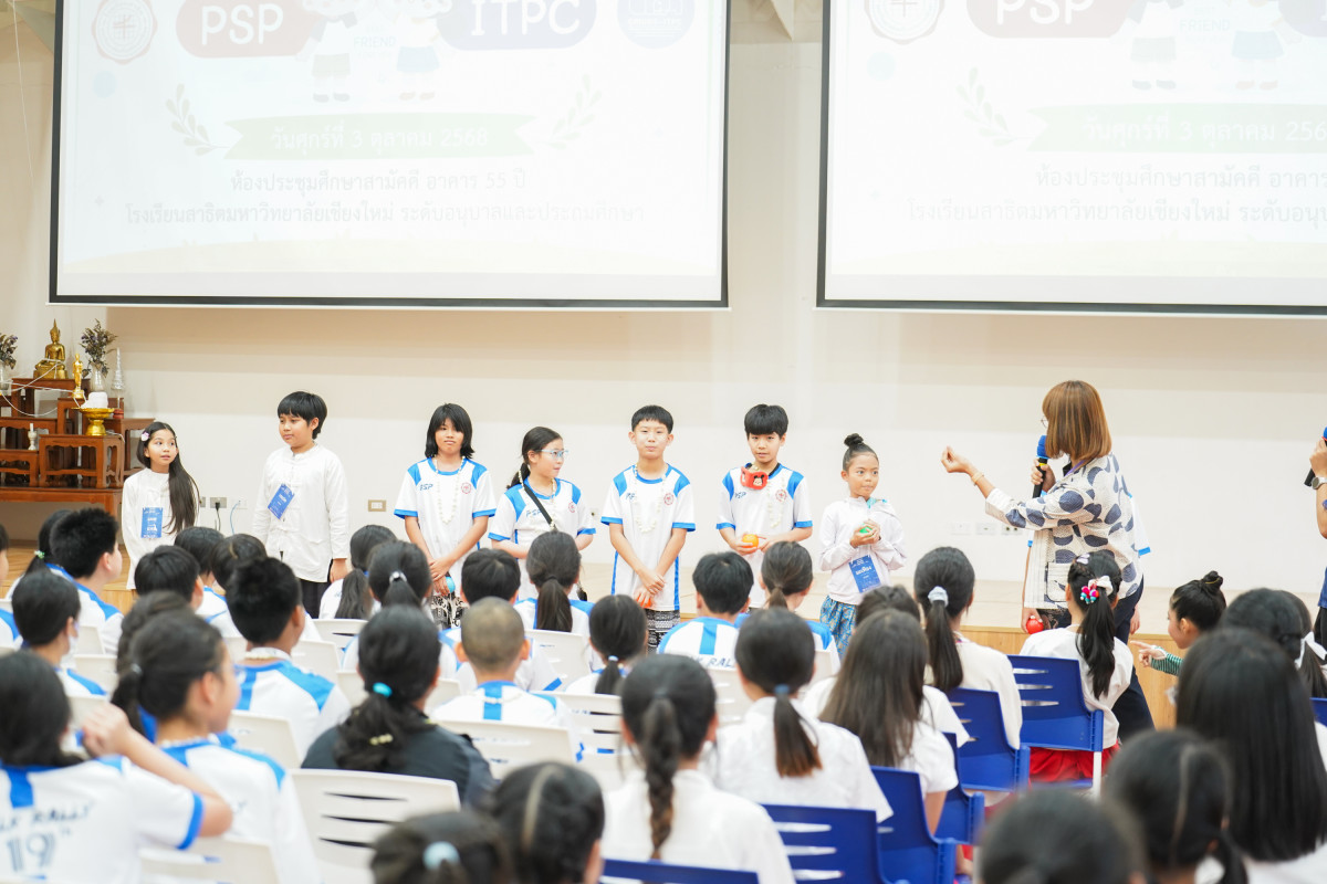 เมื่อวันที่ 3 ตุลาคม 2568 โรงเรียนสาธิตมหาวิทยาลัยเชียงใหม่ ระดับอนุบาลและประถมศึกษา ให้การต้อนรับผู้บริหาร คณาจารย์ และนักเรียนจากโรงเรียนสาธิตมหาวิทยาลัยศรีนครินทรวิโรฒ ประสานมิตร (ฝ่ายประถม) นำโดยอาจารย์ ดร.มิ่ง เทพครเมือง รองผู้อำนวยการฝ่ายกิจการนักเรียน และอาจารย์ประเสริฐ ขำดำ รองผู้อำนวยการฝ่ายพัฒนากายภาพ โดยมีผู้ช่วยศาสตราจารย์ ดร.ทิพย์รัตน์ นพฤทธิ์ คณบดีคณะศึกษาศาสตร์ รองศาสตราจารย์ ดร.สมเกียรติ อินทสิงห์ ผู้อำนวยการโรงเรียนสาธิตมหาวิทยาลัยเชียงใหม่ และอาจารย์ไชยรัตน์ นิติกาญจนโภคิน รองผู้อำนวยการโรงเรียนสาธิตมหาวิทยาลัยเชียงใหม่ พร้อมด้วยคณาจารย์และนักเรียนอาสาสมัครร่วมให้การต้อนรับ เพื่อร่วมทำกิจกรรม “สานสัมพันธ์เพื่อนพ้อง PSP-ITPC” โดยมีวัตถุประสงค์แลกเปลี่ยนวัฒนธรรมท้องถิ่นและสานสัมพันธ์ฉันท์มิตรในเครือโรงเรียนสาธิตร่วมกัน ณ โรงเรียนสาธิตมหาวิทยาลัยเชียงใหม่ ระดับอนุบาลและประถมศึกษา