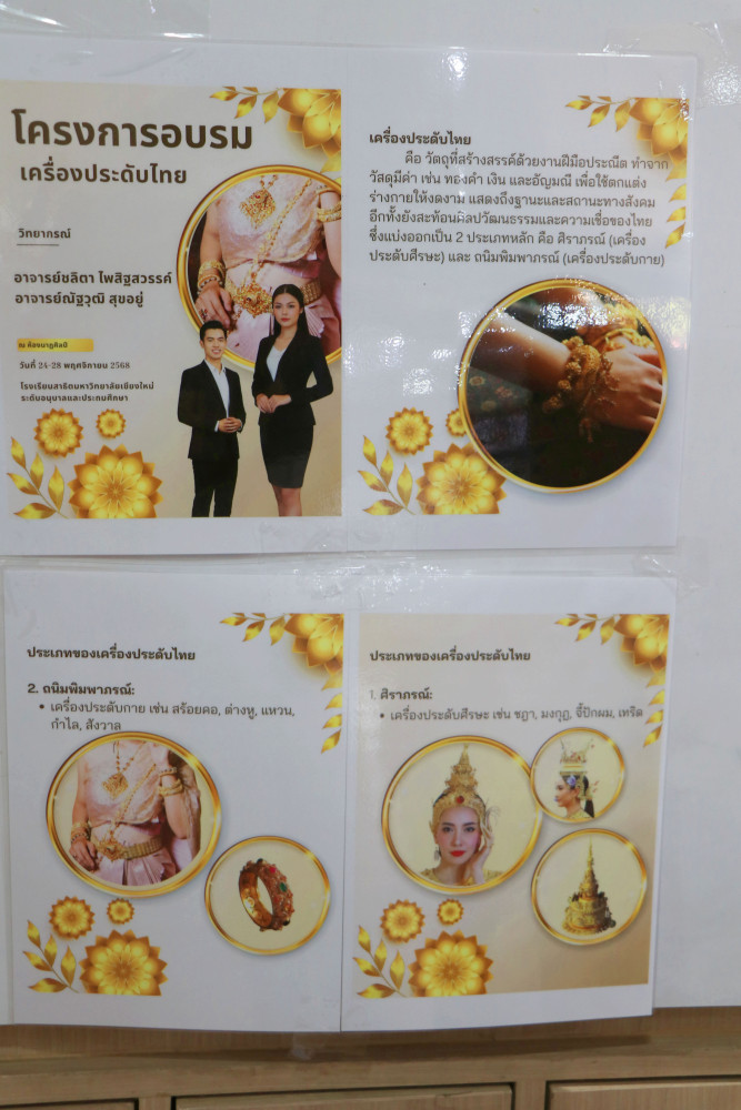 เมื่อวันที่ 24-28 พฤศจิกายน 2568 โรงเรียนสาธิตมหาวิทยาลัยเชียงใหม่ ระดับอนุบาลและประถมศึกษา โครงการส่งเสริมการเรียนรู้เครื่องประดับไทย ภายใต้หน่วยการเรียนรู้ ของกลุ่มวิชา นาฏศิลป์ และ ศิลปะ สำหรับนักเรียนชั้นประถมศึกษาปีที่ 1-3