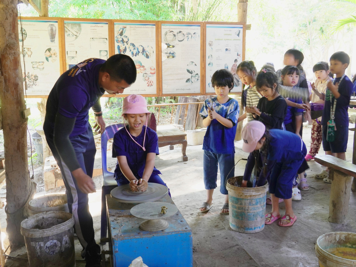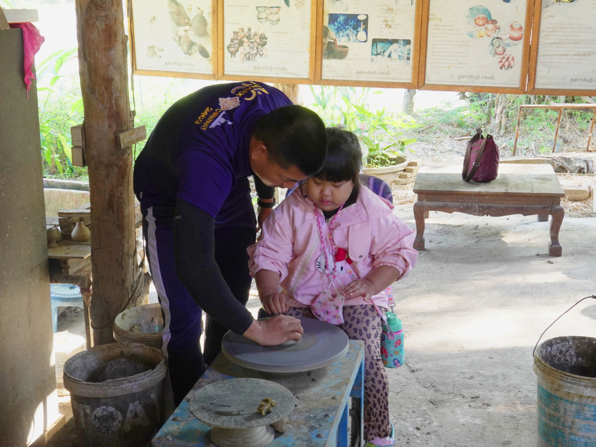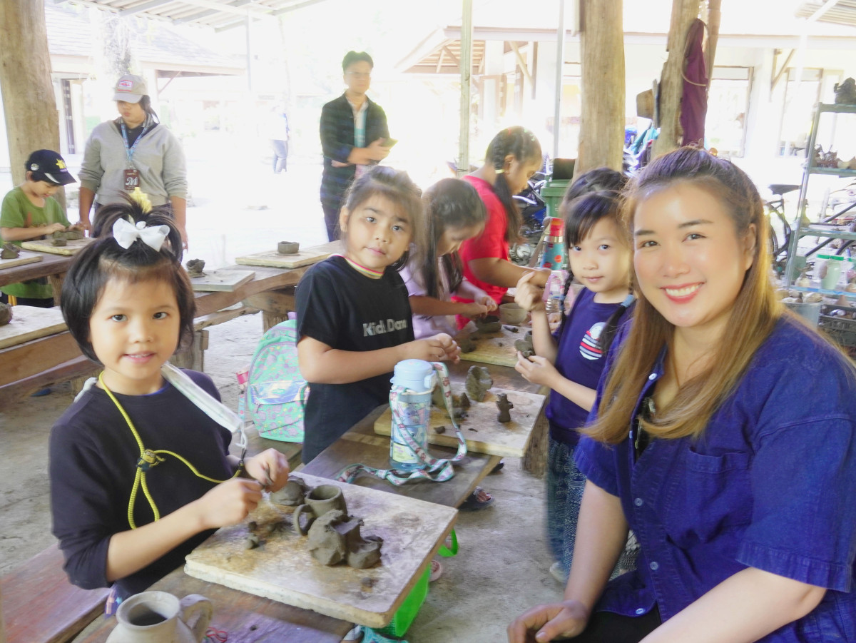 2. ฐานการเรียนรู้งานฝีมือ (งานแกะสลัก เครื่องปั้นดินเผา และการทำกระดาษสา)